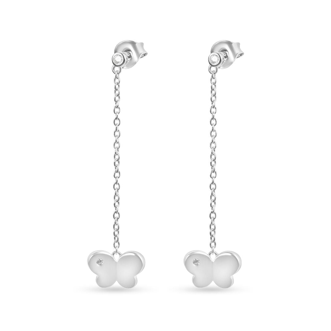 עגילי כסף תלויים בעיצוב עדין וקליל, עם פרפר קטן שמוסיף נופך של רכות וקסם. כל עגיל תלוי בצורה חופשית ומזכיר את תנועת הפרפרים ברוח, כאשר העיצוב המדויק והגימור המבריק מעניקים לו מראה אלגנטי ונשגב. עשויים מכסף סטרלינג איכותי, העגילים מושלמים להוסיף נגיעת טבע ואלגנטיות לכל מראה, בין אם יומיומי או חגיגי.