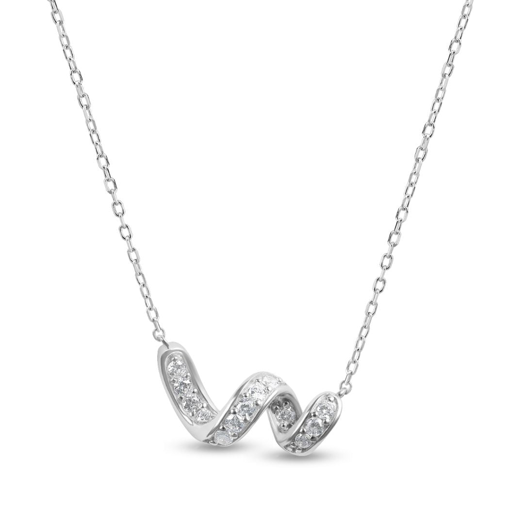 שרשרת כסף עם תליון בצורת סליל מעוגל, משובץ באבנים זירקון מנצנצות. העיצוב המעוגל והעדין יוצר מראה מודרני ואלגנטי, והאבנים המפוזרות על פני הסליל מעניקות לתכשיט זוהר מיוחד. תכשיט שמביא עימו תחושת תנועה ויוקרה לכל הופעה.